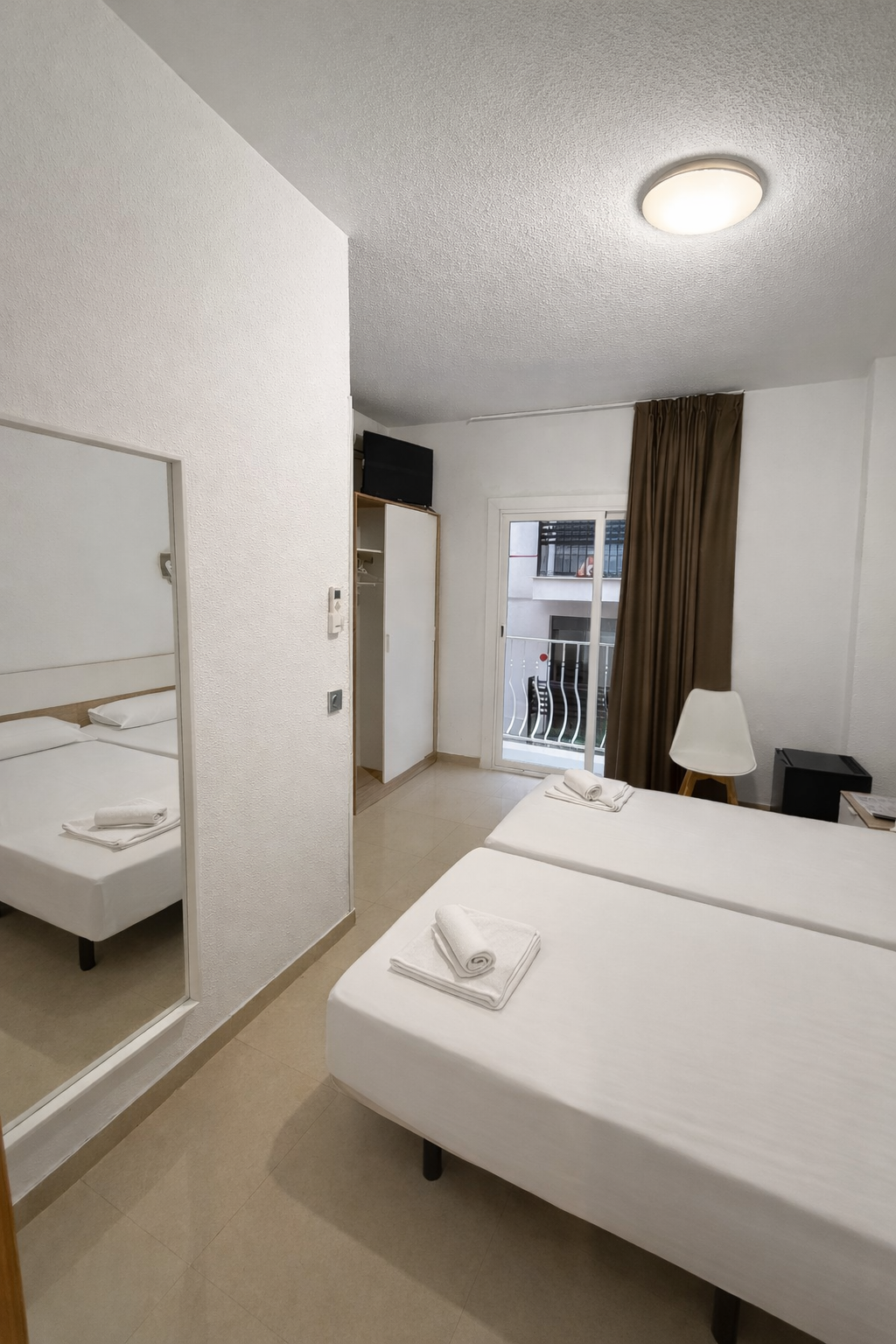 Comfortable and functional room with two single beds, ideal for a practical and comfortable stay. The room features a balcony, free Wi-Fi, air conditioning, a flat-screen TV, a desk, a minibar fridge, Hairdryer, and a private bathroom with a shower or bathtub.