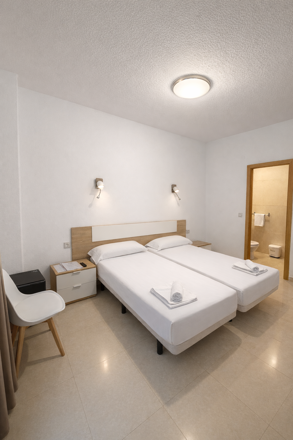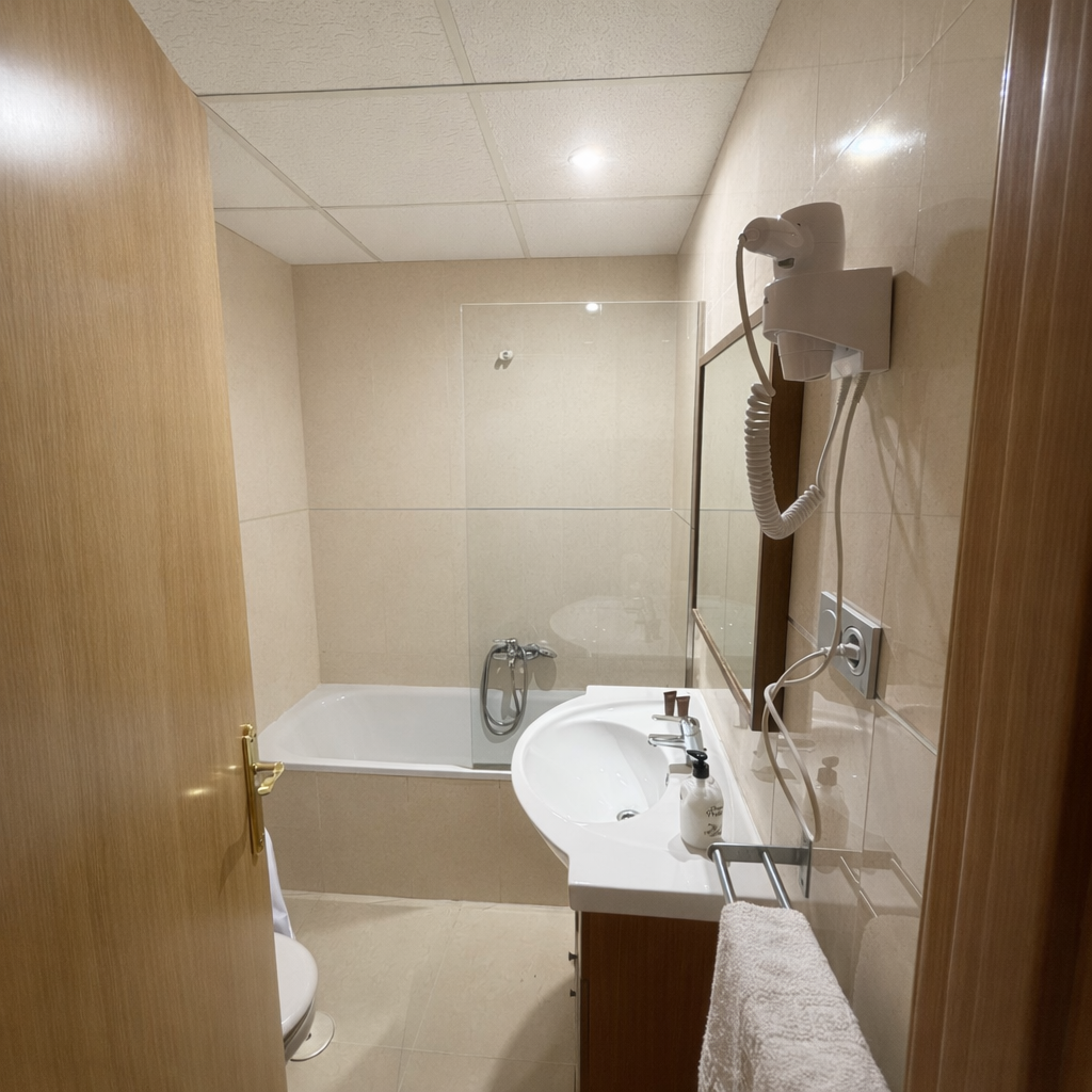 Comfortable and functional room with two single beds, ideal for a practical and pleasant stay. The room features a balcony, free Wi-Fi, air conditioning, a flat-screen TV, a desk, a minibar fridge, Hairdryer, and a private bathroom with a shower or bathtub.